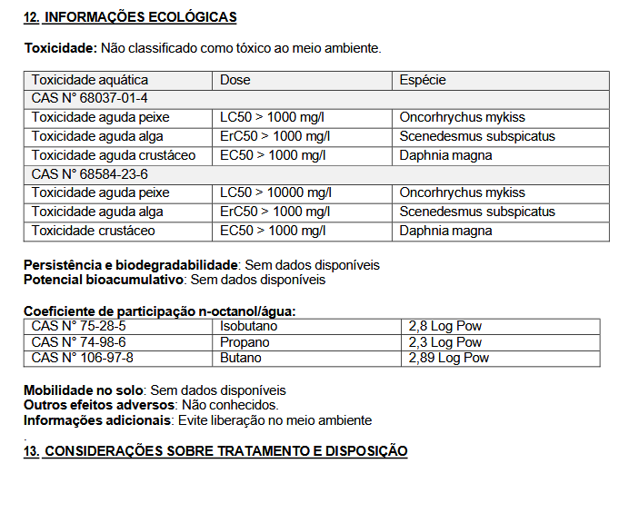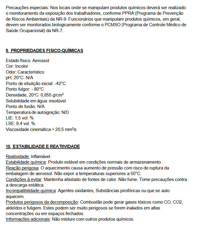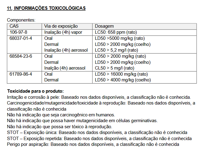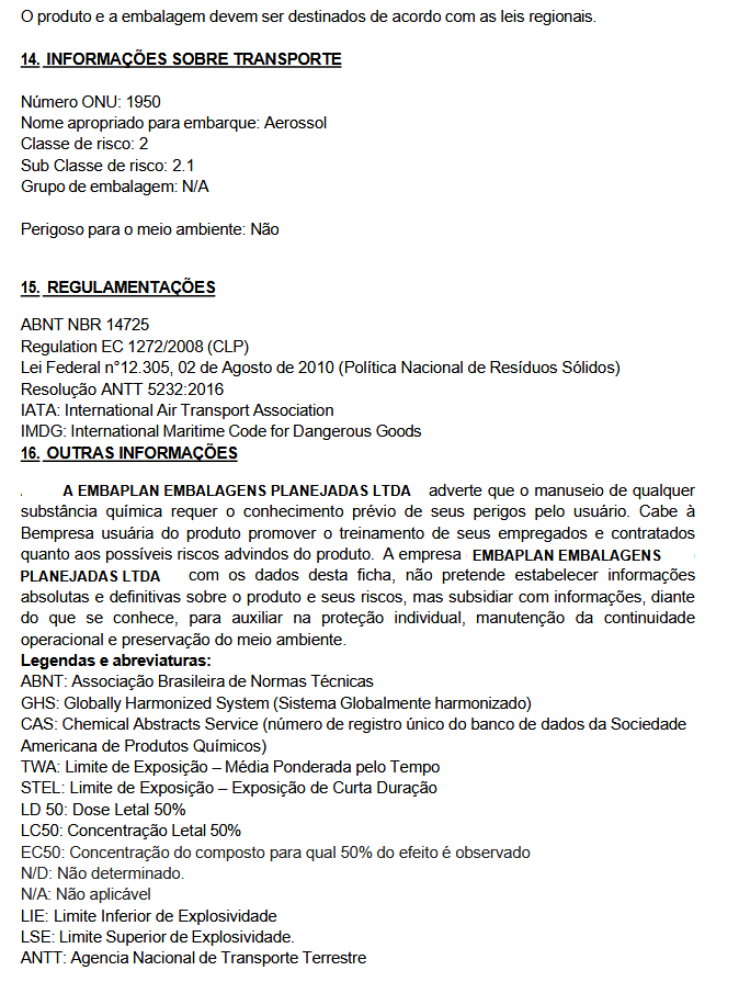 FISPQ – FICHA INFORMAÇÃO DE PRODUTO QUIMICO